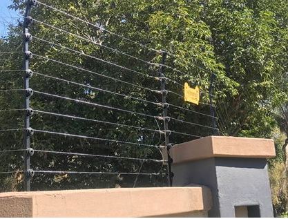 Cerca eléctrica, es un sistema de protección perimetral compuesto de hilos de acero energizados desde un equipo generador de alto voltaje no letal, solo repele ataques sin causar daño.