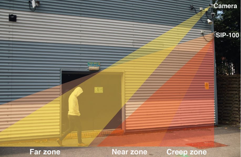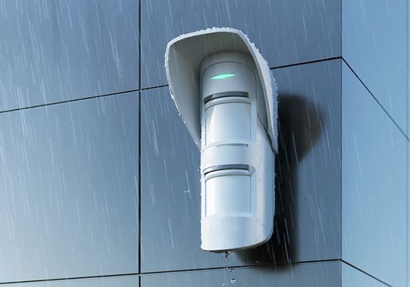 Detector de movimiento exterior, pasivo y de largo alcance, inmune a mascotas y cambios de temperatura, muy usado para alertar antes de que la amenaza llegue a la parte perimetral física como muros y ventanas.
